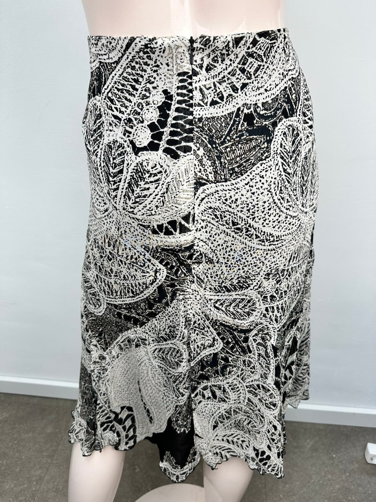 Prachtige rok in zwart met wit, in licht uitlopend model. De rok is nog nooit gedragen en valt ongeveer als maat 38/40.