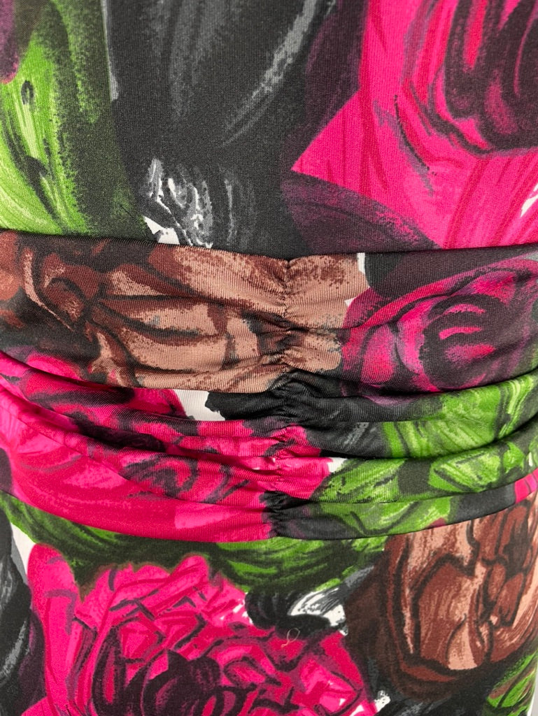 Mooie jurk met ronde hals en driekwart mouw in roze/groen/zwart. De jurk heeft minimale draagsporen en geeft mee.